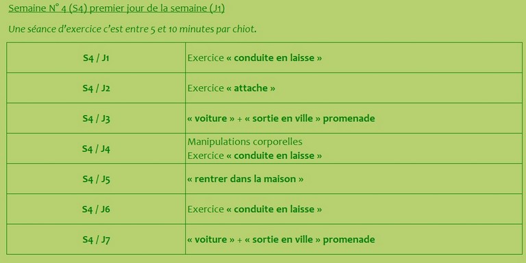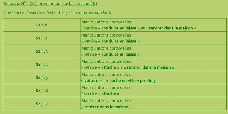5 – Liste des exercices de travail à réaliser avec les chiots