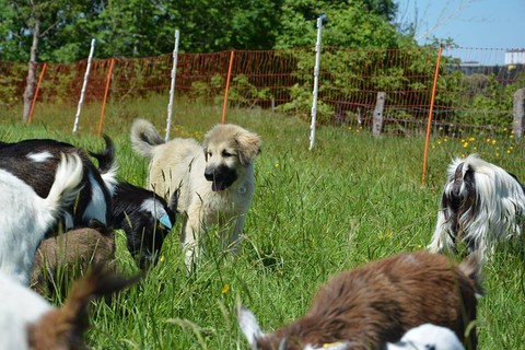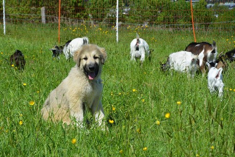 ORGOS du Hogan des Vents. Il est absolument indispensable que les chiots de moins de deux ans soient en permanence supervisé par un humain au risque de les voir jouer avec les chèvres ou les cabris et de les blesser.