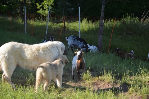 Je viens vous donner des nouvelles des chiens protégeant notre élevage de chèvres miniatures.
