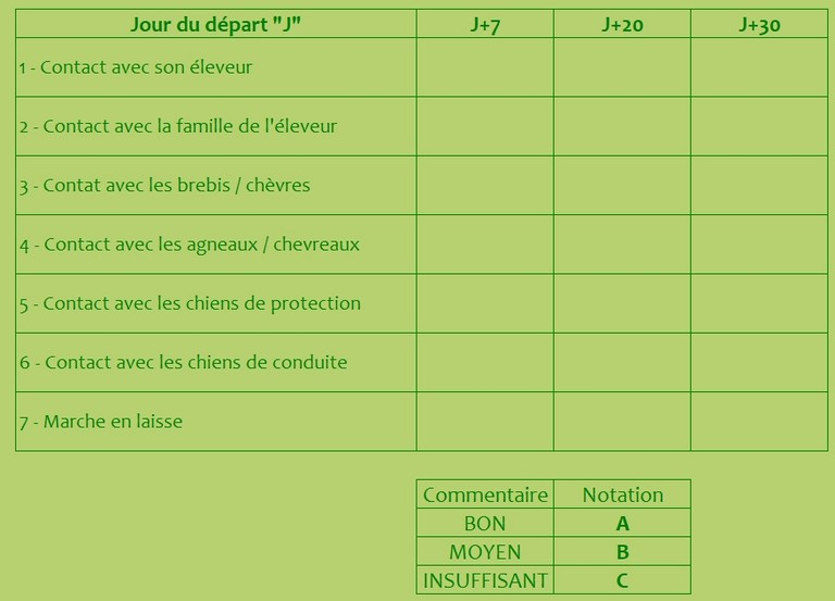- Tout placement de chiot dans un troupeau devrait être précédé d’une enquête auprès de l’éleveur afin de vérifier que les conditions de succès sont bien remplies. Rien ne sert de placer des chiens dans une situation où ils seront inévitablement mis en échec.