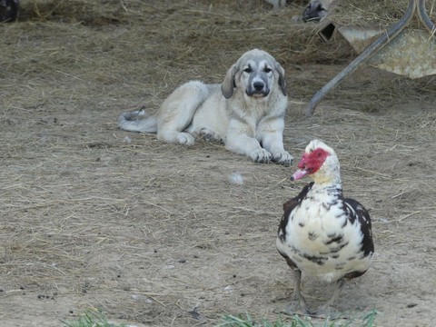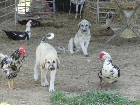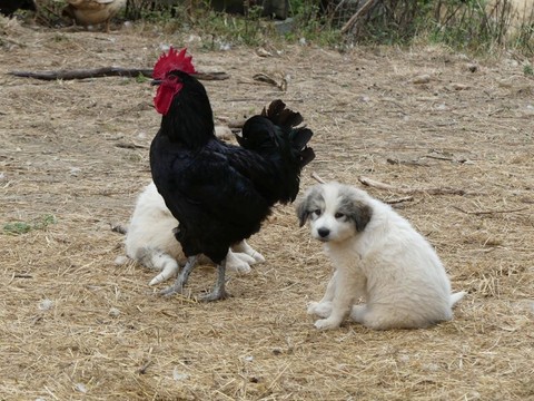 Les chiots destinés à la protection des volailles doivent être mis en présence de différentes espèces afin de se familiariser avec elles.