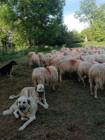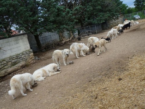 L'apport du Montagne des Pyrénées adoucit également le comportement ce qui est un avantage dans nos conditions de travail où les chiens sont souvent en contact avec des consommateurs de Nature ... dont le comportement est plus qu'aléatoire ! J'ai vu des promeneurs jeter des cailloux sur mes chiens (pourtant derrière leur clôture) simplement parce qu'ils aboyaient au passage des dits promeneurs qui m'ont également insulté au passage parce que je leur faisais la remarque que ce genre d'attitude était tout à fait contreproductif.