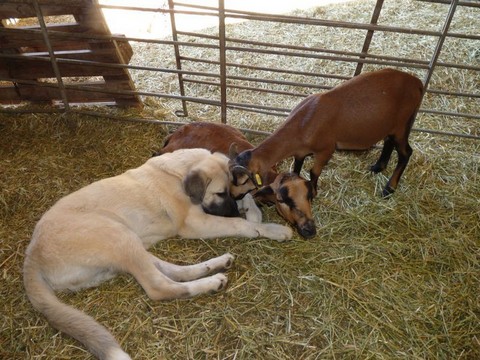 Précisons aussi que les Kangal des dites personnes passent leur vie entre chenils et rings d’exposition, et n’ont probablement jamais croisé le regard d’un mouton si ce n’est sur un poster au-dessus de leur canapé ou alors celui d’un troupeau se résumant à deux chèvres naines sur 50 m² de gazon … Je ne parle même pas de tous les poncifs habituels divulgués par ces grands spécialistes sur des sites dits professionnels : vermifuges, antiparasitaires et vaccins à gogo, chiots vendus à deux mois, une main de fer dans un gant de velours, un chien têtu, un chien pour faire du sport (on croit rêver franchement) l’obéissance (et ça se dit grand spécialiste ?) et cerise sur le gâteau encourager la stérilisation précoce des chiots (là j’ai vraiment failli m’étrangler) !!! Quant à l’épisode j’ai donné des croquettes sans céréales et ça ne marche pas du tout chez le Kangal … Oui mais t’as déjà entendu parler du YAL (*) poulette ? Nos chiens de protection ont une histoire et c’est mieux de la connaître avant de jouer aux apprentis sorciers.